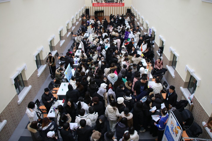 会议结束后,2024届毕业生前往学前教育学院二楼展播厅参加双选会,用人单位通过宣讲、宣传单页、展板等形式向同学们介绍相关招聘信息,同学们踊跃投递个人简历,并进行现场初试,多名学生达成就业意向。