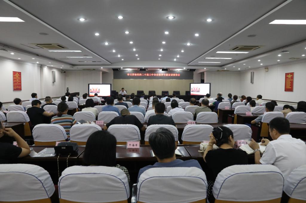宣讲会上,钟世新同志从深刻领悟党的二十届三中全会的重大意义,深入学习领会习近平总书记在党的二十届三中全会上的重要讲话精神,全面准确理解《决定》提出的进一步全面深化改革重大举措及抓好全会精神贯彻落实等方面进行系统阐释和深入解读。