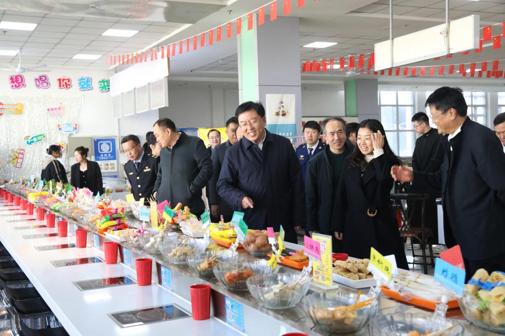 在学生食堂,他详细了解了食堂日常管理、操作流程、食品留样等工作落实情况,并与学生亲切交谈,询问菜品适口度和新鲜度。他强调要守紧守牢食品安全底线,把校园食品安全摆在重要位置,确保师生“舌尖上的安全”。