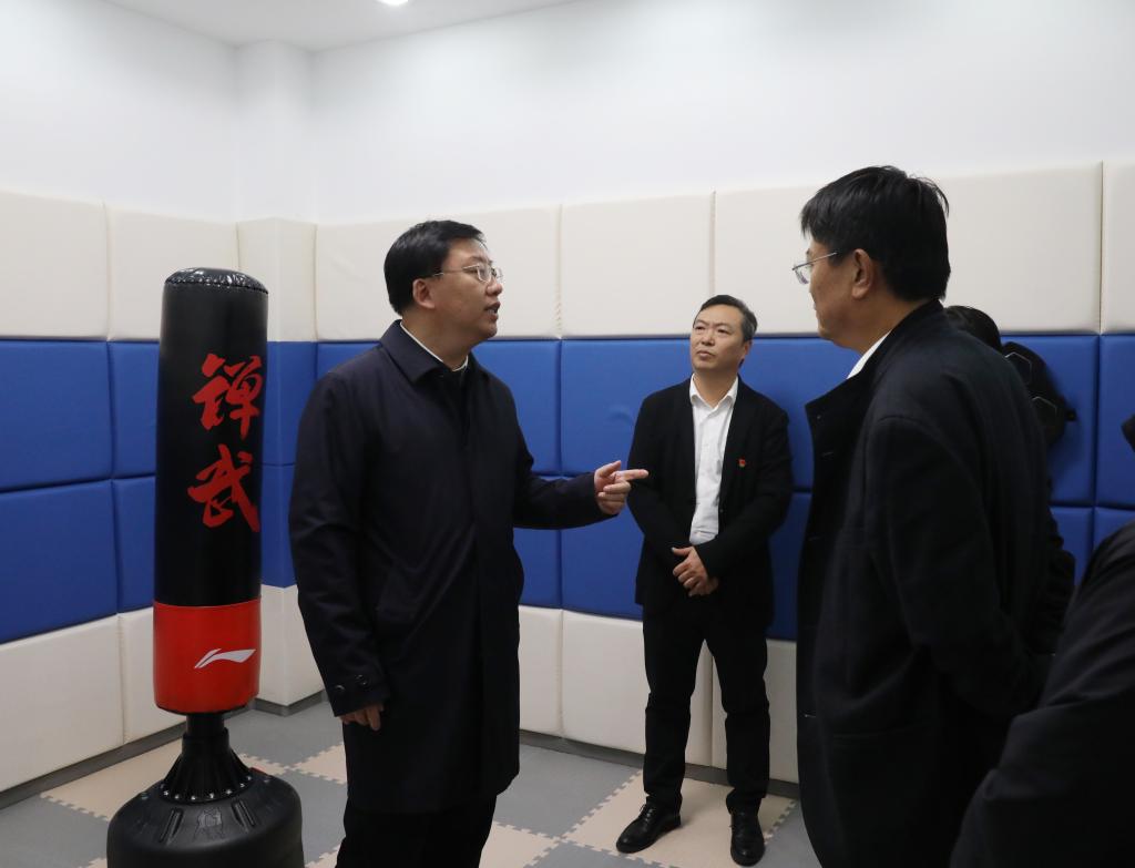 在大学生心理健康发展中心,他查看了各功能室建设,详细询问了中心实效性、师资配备等情况。他强调要强化矛盾纠纷排查化解,树牢底线思维,关注师生心理动态,积极开展师生心理健康咨询,及时发现苗头性、倾向性问题,重点排查宿舍内同学之间矛盾纠纷,有效强化源头化解,严防校园个人极端案(事)件发生。