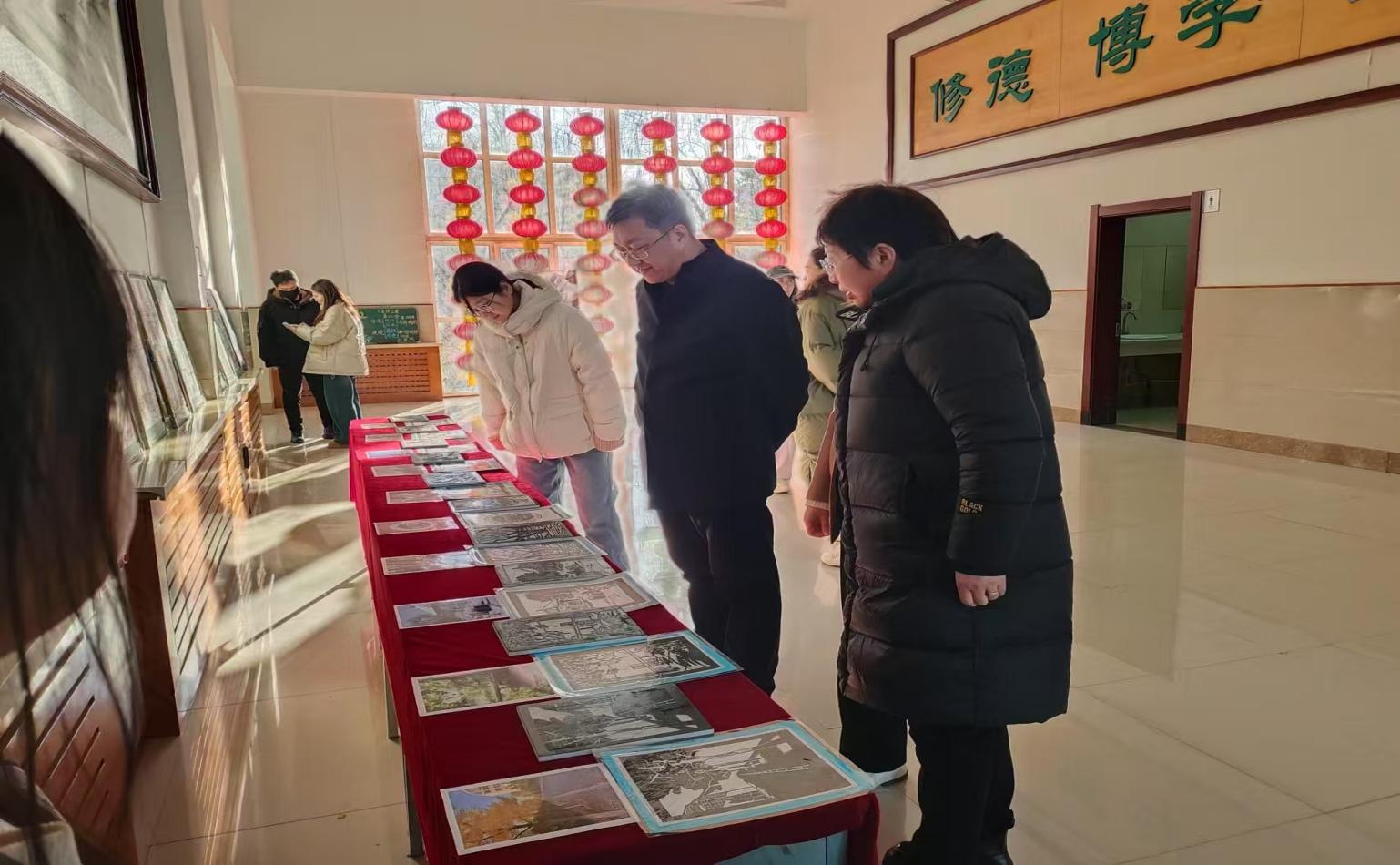 作品展示安排在A报告厅西侧走廊,16幅作品紧扣课程标准,教学目标明确,教学环节设计巧妙,充分考虑了小学不同年级学生的认知特点和学习需求,表达出以学生为中心的教育理念。一块块小黑板上的粉笔字彰显了师范生扎实的粉笔字功底;美术作品也大放异彩,水彩画、木版画等多种样式描绘了美丽的校园风景,丰富多彩的课堂生活......观众能从中感受到学生良好的艺术修养和审美情趣。
