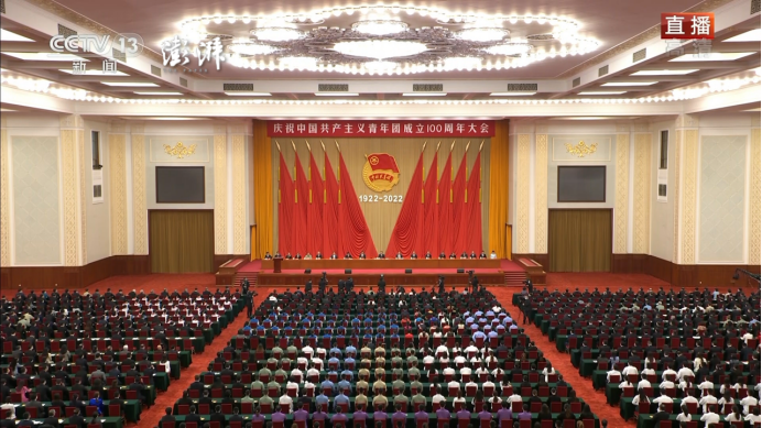10日上午,庆祝中国共产主义青年团成立100周年大会在北京人民大会堂隆重举行。中共中央总书记、国家主席、中央军委主席习近平出席大会并发表重要讲话。