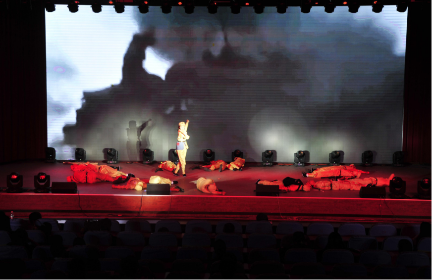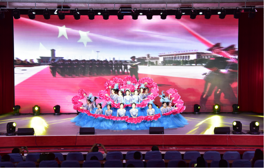演出的14个节目,融合歌舞、朗诵、独唱、合唱、情景表演等形式,内容紧紧围绕歌颂党、歌颂祖国,展现了全校师生坚定理想信念、勇担初心使命的精神风貌。