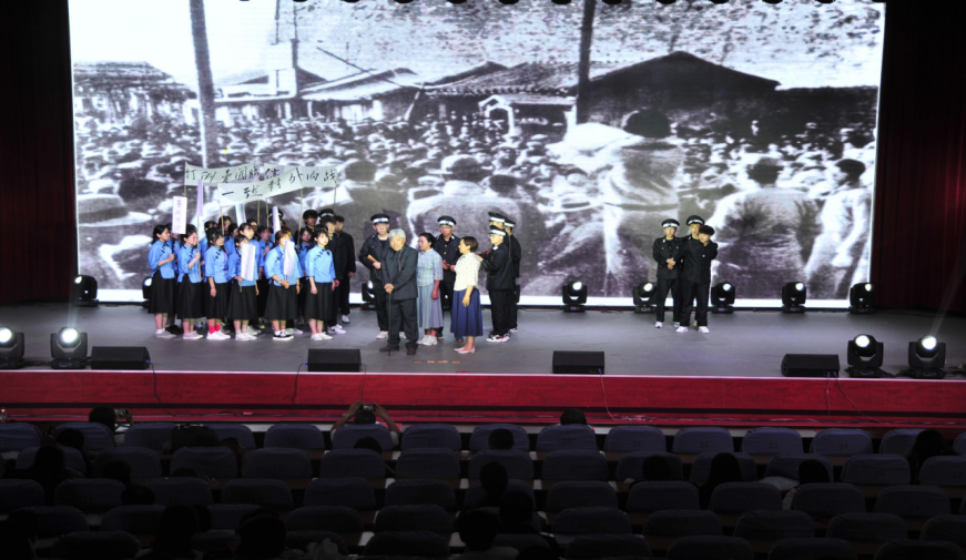 市委党史学习教育第五指导组副组长、市委宣传部二级调研员方通,指导组成员、市工信局总经济师祁晓静,学校党政班子成员、中层以上领导干部、全体教工党员及民主党派代表近400人现场观看了此次文艺汇演。